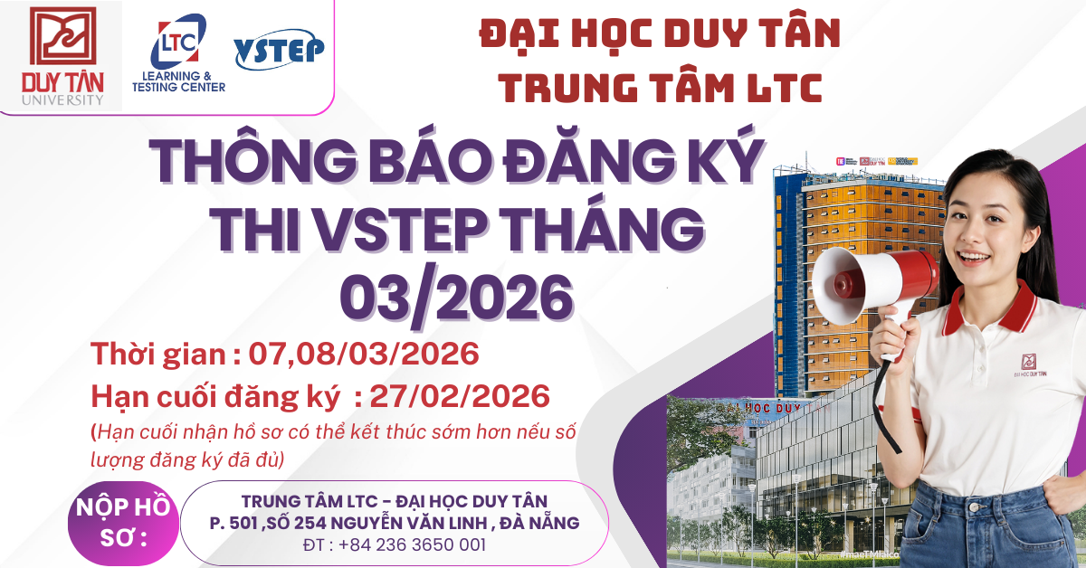 THÔNG BÁO LỊCH THI ĐGNL TIẾNG ANH VSTEP NĂM 2026 TẠI TRUNG TÂM LTC - ĐẠI HỌC DUY TÂN